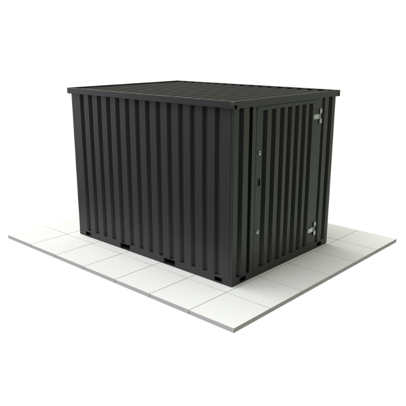 Manufactured from 0.8mm thick, fully galvanised steel and finished with a durable Anthracite Grey powder coating, this container is built to withstand harsh weather conditions and daily wear. Its rugged design is complemented by an internal wooden floor, integrated ventilation, and guttering systems—all working together to keep your contents dry and protected from condensation and water ingress.