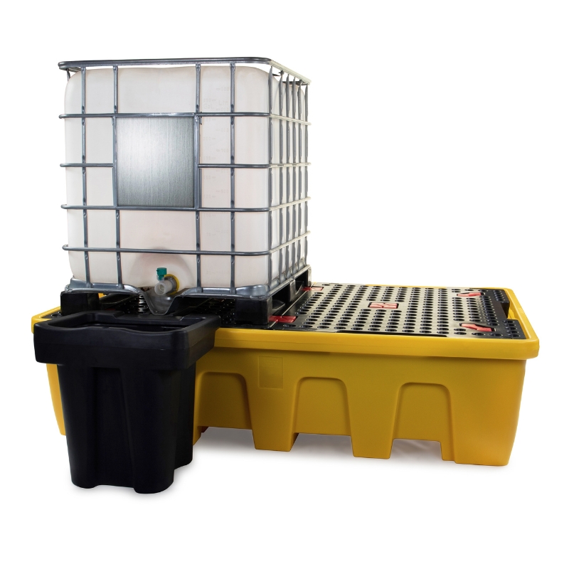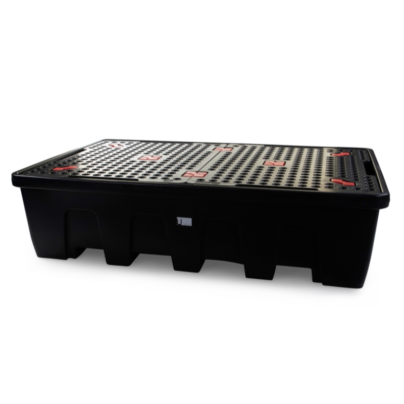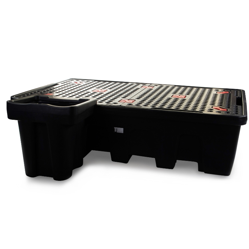 This variant features a nestable design, allowing multiple pallets to be stacked together when not in use, optimising storage space and reducing clutter in your facility. With a substantial 1,200-litre containment capacity, the pallet effectively manages spills and leaks, maintaining a clean and compliant workspace. The pallet accommodates two IBCs side by side, maximising storage efficiency while providing easy access for dispensing and handling.